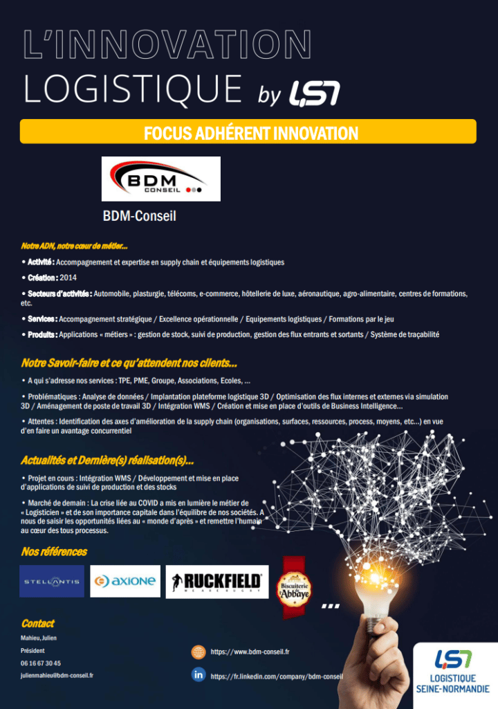 Ce mois-ci, mise en avant de BDM Conseil qui propose accompagnement et expertise en Supply Chain et équipements logistiques.