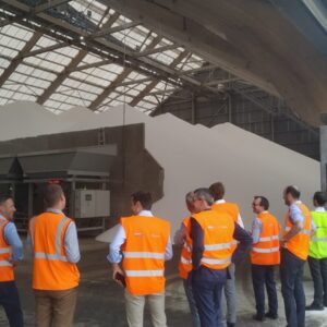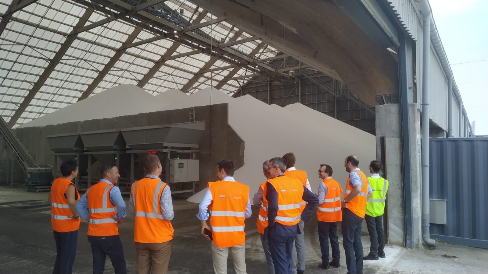 En fin de matinée, la délégation a pu visiter l’entrepôt en construction porté par VGP et GSE avec EOL pour Sénalia, sur l’ancienne friche de la raffinerie Pétroplus. L’entreprise Sénalia a ainsi présenté ses activités historiques et ses objectifs d’investissement et de développement pour les années futures à Rouen axés notamment sur de la logistique industrielle. Sénalia verra ainsi ses capacités de stockage de palettes être multipliées par 7 passant de 12 000 actuellement à près de 92 000. Les discussions furent une nouvelle fois variées et nombreuses sur les difficultés d’acquisition du foncier, d’aménagement de terrain et de portage de projets logistiques, et notamment sur les problématiques environnementales, de gouvernance et d’acceptabilité sociale.