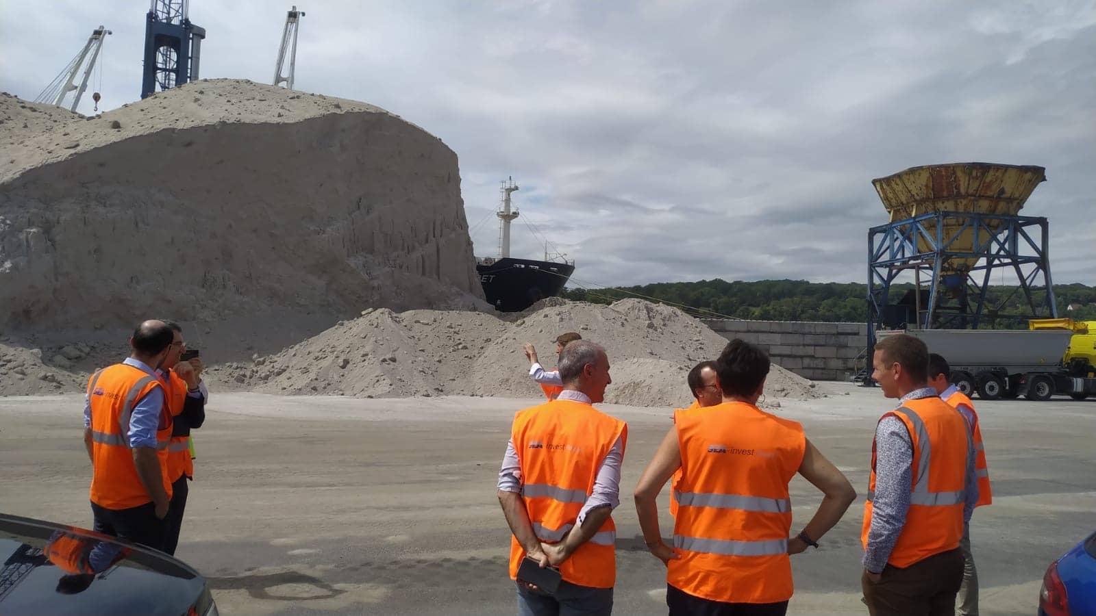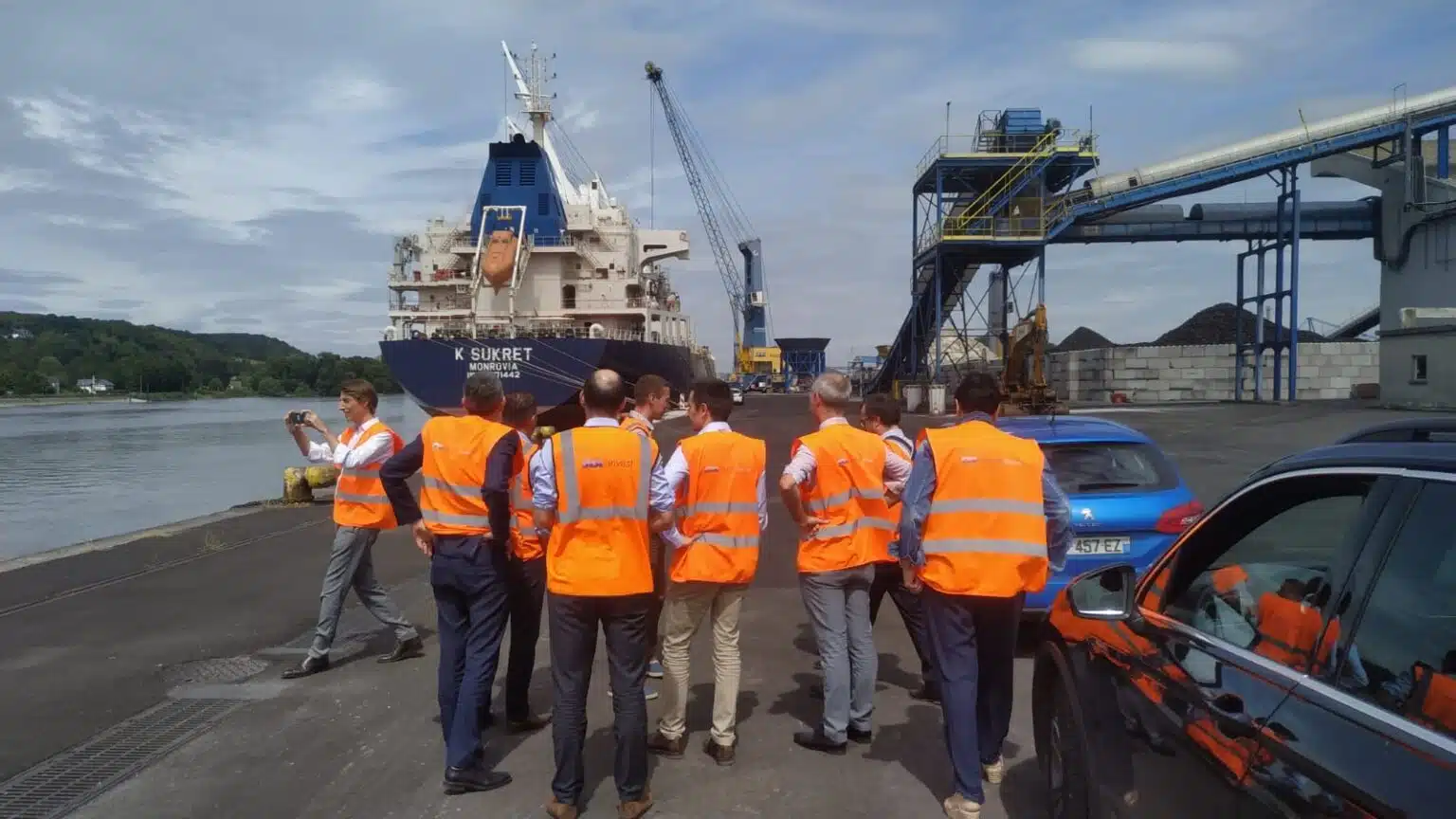 L’après-midi, la société Sea-Invest accueillait les services ministériels pour une visite guidée de leur site de Grand-Couronne. L’occasion de présenter Sea-Invest et de parler de leurs activités de manutention et de stockage de vracs solides et liquides. L’entreprise, historiquement tournée vers la gestion de charbon, est un exemple en matière de reconversion de modèle économique dû à la transition énergétique en œuvre. Elle réalise également une partie de son activité via des modes multimodaux : maritime, fluvial et fer, grâce notamment à leur 3 quais et à leur installation terminale embranchée (ITE) financée dans le cadre du plan France Relance avec l’aide de la Région Normandie.